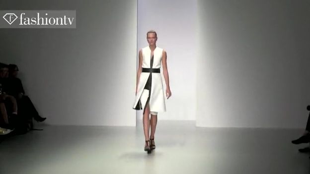 Geometria, asymetria to główny element nieco futurystycznej kolekcji gruzińskiego projektanta. Tworzą ją trapezowe spódnice, suknie i płaszcze. Wąskie ramiona podkreślone są pasami w kontrastującymi kolorystycznie wstawkami i wycięciami. (ao)