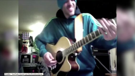Bohater nagrania opracował metodę jednoczesnej gry na gitarze i na perkusji. Mężczyzna przymocował specjalne czujniki, które wyzwalają brzmienia instrumentów perkusyjnych w chwili kontaktu z palcami. Ciekawe, czy ten pomysł sprawdziłaby się także na scenie?