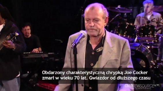 22 grudnia 2014, 22:57Skomentuj Udostępnij na X Udostępnij na FacebookuNie żyje Joe Cocker Nie żyje Joe Cocker - legendarny angielski wokalista rockowy i popowy. Miał 70 lat. Od dłuższego czasu walczył z rakiem płuc. Śmierć muzyka po nieujawnionej chorobie potwierdził jego agent. Artysta zmarł w swoim domu w Colorado.joe cocker śmierć muzyk nowotwór rak napisy +3SkomentujZwiń opis Rozwiń opis