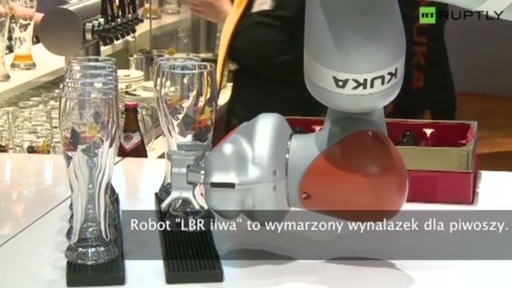 Robot "LBR iiwa" to wymarzony wynalazek dla piwoszy. Potrafi on otworzyć chmielowy trunek, starannie nalać go szklanki, a nawet podać go do ręki klientowi. Robot radzi sobie lepiej od niejednego barmana, pewnie dlatego zyskał przydomek "inteligentnego asystenta". Ważący ok. 30 kilogramów "LBR iwaa" został zaprezentowany na targach technologicznych w Hanowerze